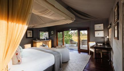 Here Botswana’s seasonal Gomoti River brings an ebb and flow of ever-changing wildlife across a mosaic of habitats – woodlands, wetlands and grasslands – that surround the camp, delivering some of the best wildlife sightings on Earth.