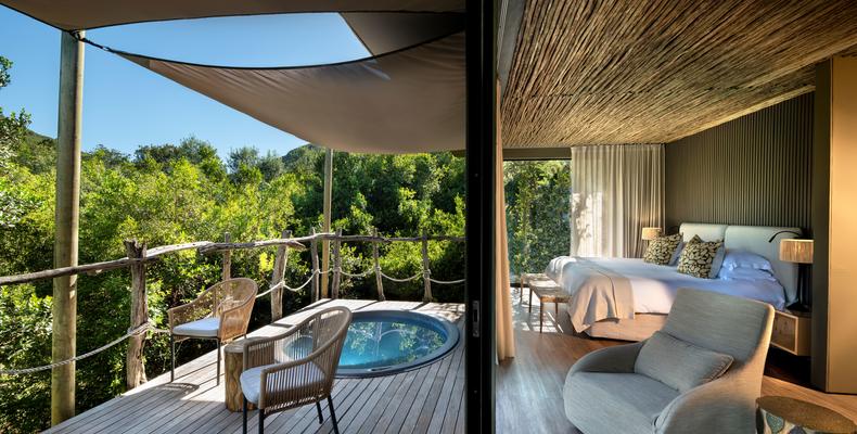 This blended canvas paradise offers guests the opportunity to immerse themselves in utter tranquillity. Surrounded by rich vegetation it provides privacy and a feeling of seclusion with spectacular views of the African bush.