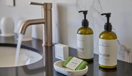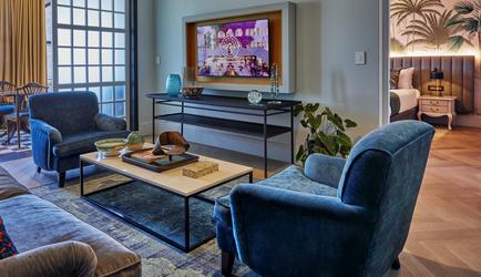 The Winchester Hotel has 76 rooms, including various suites and lofts. Select rooms offer ocean or mountain views while each one features striking decor that builds on a monochromatic palette with hints of colour and quirkiness, including stunning Ardmore fabrics.