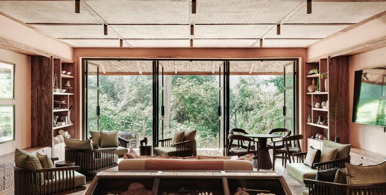 The updated lodge uses natural, locally sourced materials, showcasing the best of Ugandan artisanship the lodge. A free flowing open-sided lounge, bar and dining space decorated in shades of pale terracotta, with high-quality furniture and artworks forms the beating heart of the lodge.
