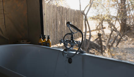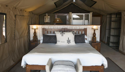After an exhilarating day of game viewing, you can retreat to the cool refuge of the camp’s swimming pool and enjoy delicious meals savoured al fresco or under the A-frame thatch in the dining room.