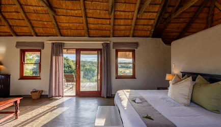 Hlosi Game Lodge is a tranquil grassland retreat offering rich game-viewing and luxurious accommodation for the whole family. Lying along a gentle curve of a hill above the river plain, our suites offer wide-open views with four-star comforts. The main lodge includes elegant lounge and dining areas, and a splendid bar overlooking the swimming pool and waterhole.
