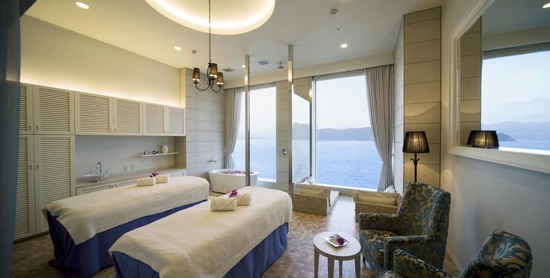 The hotel is located in Moto-Ujina Park on Hiroshima Bay, surrounded by Setonaikai National Park.