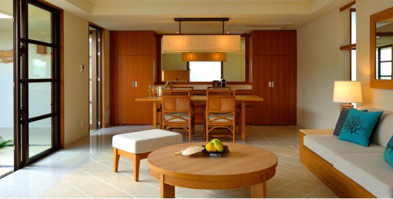 The Uza Terrace Beach Club Villas are located in the Yomitan, Nakagami District in Japan. The villas are elegant and spacious, each with a modern chic style. The villas have features to make guests more comfortable like air-conditioning, fully equipped kitchen, portable audio speakers, a TV set, Blu-ray deck, mini bar, Wi-Fi and a private pool. Other features around the property include a valet service, butler service, and drink service in the bar and lounge. Fine dining is offered at the Reception House 2F where Italian-based continental cuisine incorporates local ingredients. The bar gives guests a space to relax with the ocean view and the evening view dyeing the East China Sea.
