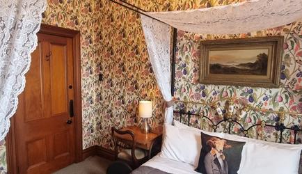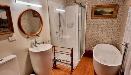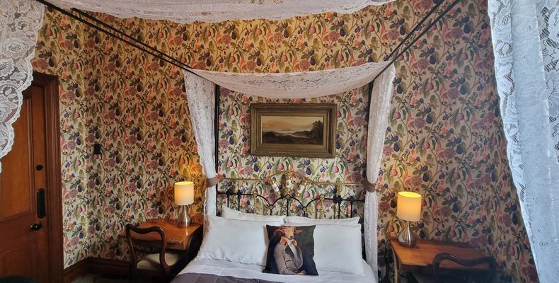 - Room 58: A spacious room with Aruba Ochre wallpaper, high varnished Kauri ceilings, and a deep bath ensuite, creating an inviting ambiance adorned with elegant decor.