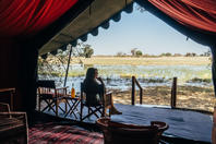 Pitched beneath shady ebony trees beside a seasonal floodplain, the Camp comprises just eight semi-permanent Meru-style tents with 3 double and 5 twin rooms. Built directly on the forest floor, the camp creates an intimate connection with the surrounding wilderness while remaining comfortable and refined. Each tent features antique furnishings, Persian rugs and a fully plumbed en-suite bathroom with hot water, flush loo and indoor shower. A private deck overlooks the floodplains, offering a peaceful space to relax and observe the Delta’s ever-changing light.