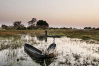 The camp is seasonal and open from April to early January. Annual floodwaters from Angola transform the landscape into a shimmering network of waterways, ideal for mokoro excursions, boating and scenic flights.