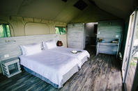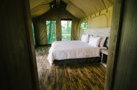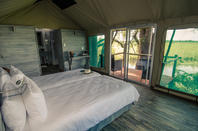 The Lodge offers thirteen Meru tents nestled within a Mangosteen Forest. The tents have private wooden decks overlook the Kwando River as well as the expansive floodplains between the Island and the famous Horseshoe Bend. Each tent is ensuite with a shower.