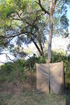 Ablutions are shared. There is a separate shower cubicle and toilet cubicle with bush toilet (long drop*). Both are enclosed by canvas for privacy and protection from wildlife.