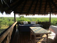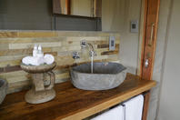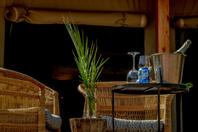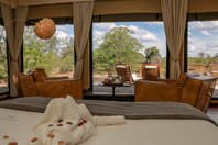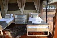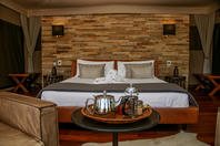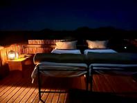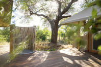 The main camp area has a large lounge and library tent filled with interesting books and a cosy fireplace for chilly evenings. Meals are served on the outdoor dining deck or around a crackling fire in the open air boma, weather permitting. A dining tent is utilised in colder or rainy weather. A small spa nestles beneath a giant fig tree and a gift shop complete the main area.