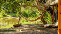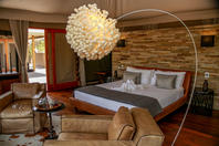 Seven elegant en-suite tents, one a family room, sit atop slightly elevated decks, all with river views and private plunge pools. Each room is en-suite with indoor baths and outdoor showers. Furnishings and décor reflect a combination of modern comforts and wilderness ethos.