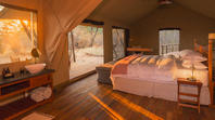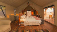 The camp comprises of ten classic style tents, two of which are family tents. All are at ground level set on wooden decks and each tent is tastefully furnished, with en-suite bathrooms comprising shower, toilet and double basins.