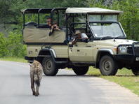 • Zodra u bij een viercruise bent aangekomen, gaat u linksaf (in de richting van de bewegwijzerde Lower Sabi\/Rhino Walking Safaris) .