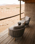 Damaraland Camp is situated in the Huab River Valley in one of the best wilderness areas in Namibia, offering endless vistas across stark plains, ancient valleys and a stunning ochre-purple mountain backdrop. Ten large en-suite, adobe-style thatched units (including a family unit) are raised off the ground, each with a walk-in dressing area and a large deck on which to sit and contemplate the desert.