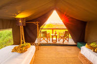 This small intimate hideaway with spectacular views over the floodplain can accommodate a maximum of eight guests in four Meru style tents with rustic en-suite bathrooms, each individually built on a wooden platform and shaded by reed shelters. The bar and lounge areas have comfortable seating and a raised viewing deck overlooks the sweep of the delta – the perfect place to watch the sun rise over the floodplain and view whatever wildlife may be visiting. Meals are simple yet wholesome, and are enjoyed in the main complex.