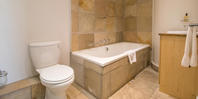 These units have 2 bedroom with two bathrooms and a seating area.
