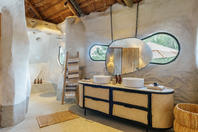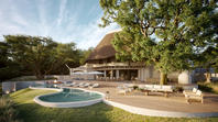 The accommodation and facilities at Chongwe River House consist of four bedrooms, two upstairs and two downstairs, each with open views to the front (safety gates on the lower floor). Each bedroom has an en-suite bathroom of an individual style, built out of natural material. The downstairs bathrooms have water pouring out of the stone ceilings and the upstairs showers are waterfalls. Taps are made from bone and wood and the basins are hand-crafted out of wood and white marble by Zambian artist Eddie Mumba. The bedrooms and bathrooms each have views across the bush, yet are private. The main lounge and dining area have been carved from a single huge fallen Winterthorn which lies across the room and the ceilings have been embedded with rounded pebbles from the Chongwe River. There is a huge main dining table, bar area and comfortable lounges all open to the front with a view across the river to the National Park. A stunning plunge pool weaves around the front of the house leading down to the River.