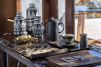 Guests can relax in the main lodge, perusing the library or taking advantage of the two heated swimming pools or the Jacuzzi. The lodge offers a Spa and Yoga room and there is a 9-hole golf course 45 minutes from the lodge. For the more adventurous, guests can enjoy one of the open land cruiser or walking safaris with an experienced guide and tracker. Game fishing and San Bushman Rock Art educational tours are also available and children of all ages are welcome.