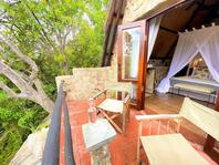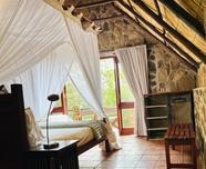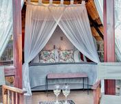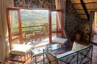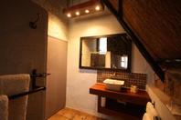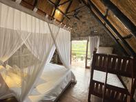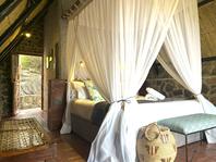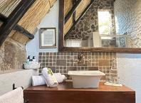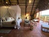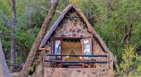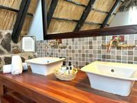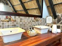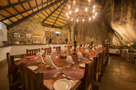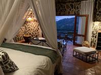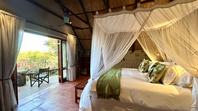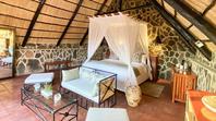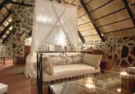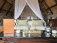 The seven thatched A-frame cottages, each with en-suite bathroom and private balcony, resonate African creative flair. Included is a honeymoon suite as well as family rooms for those with small children. Retire at a day's end to the natural rock-pool and sundeck, the Leopard`s Lair lounge and bar, a cave-style boma for pre-dinner drinks or the popular lodge library.