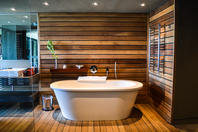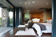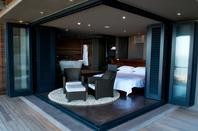 The Villa offers 6 identical sea facing suites that boast 180-degree view of the ocean. With floor to ceiling glass doors that open up to a private deck, the suites are en-suite with an open plan wet room that has a bath and rain shower.