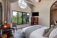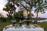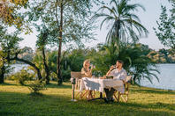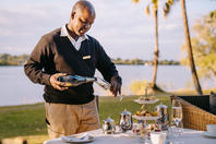 There is an à la carte restaurant with a large al fresco dining area under a canopy of trees which serves breakfast, lunch and dinner. Dining outside under the African night sky amidst the sound of the mighty waterfall makes for a very romantic evening. The outdoor bar offers a comprehensive wine list and cocktails. The hotel has an equipped gym in the main area.