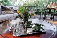 The Palm offers a variety of room types, all with expansive views of the riverside garden from the bedroom, verandah or balcony. The 73 rooms are made up of deluxe rooms, honeymoon suites, executive suites and a presidential suite. All rooms are en-suite with a private balcony or verandah, mini bar fridge, international plugs/ adaptors, wireless internet, in-room safe, tea/coffee self-service, air conditioning, overhead fans and satellite television.