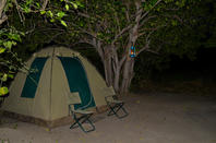 The campsite is made up of 2-man dome tents. Each tent has an outdoor washbasin, shared bush showers and toilets are set up close by.