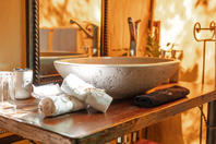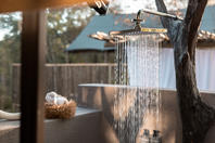 The luxury Leadwood suite is totally secluded and has it’s own private view of the drainage line below. It also boasts a bathtub, his/hers sinks and an outdoor shower. It is also the only room which can accommodate up to two children.