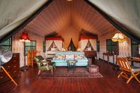 The main mess area includes a small comfy lounge (with a well-stocked drinks cabinet), tea, library and dining area, with a 24-seater vintage dining table often placed under the leadwood trees. There is a swimming pool and separate jetty, and in front of the mess tent a ‘firepit’ from which the guests can enjoy the splendid view over the lagoon or of the night sky.