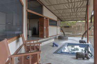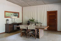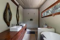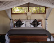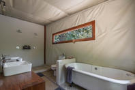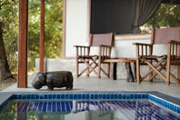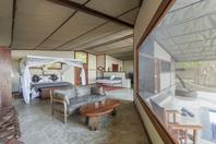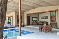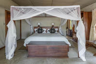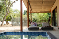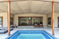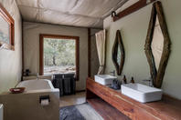 The camp has four tents: three standard luxury tents and one family tent, all shaded by huge Acacia Tortilis and Mahogany trees. The standard tents are spacious and comfortably furnished each with an en suite bathroom with claw-foot bath tub, twin showers and basins. Large Rosewood folding doors lead out onto the balcony, with a two-person hammock and private plunge pool. The family tent has a huge central living, dining and balcony area which divides the two bedrooms, both with en-suite bathrooms, twin showers, twin basins and bath tubs with views. It also has a large plunge pool, fully stocked bar and fridge and private dining table, perfect for families, or any party of four adults.