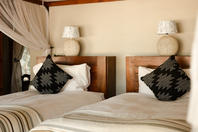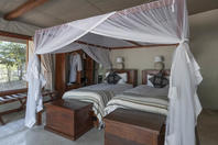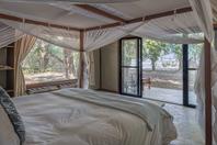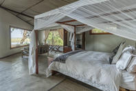 There is a large open plan living and dining area and the camp is linked by raised timber board walks, enabling the camp to extend the safari season into early January. Potato Bush has two game viewing vehicles and two boats and offers guided day and night game-drives, boating, canoeing game walks and catch and release fishing.