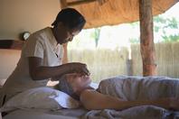 The main area includes separate dining and lounge with a central bar featuring an upstairs viewing deck. The main area looks out onto the boma and the camp’s own waterhole which offers unlimited opportunities to view game drinking and cavorting at close range. The camp’s natural ozone eco–pool provides refreshment during siesta time and is occasionally enjoyed by visiting elephants.