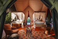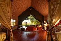 The camp offers 4 tented suites, 1 double, 2 twins and 1 family unit which has a private plunge pool. The tents have en-suite bathrooms, with indoor and outdoor showers, some with bathtubs. Each tent is built on a raised platform and has a private viewing deck. Handcrafted four-poster beds, persian carpets, rich colours, and brass fittings all add to the vintage charm of the camp.