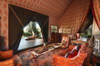 Duke’s East main tented area, delights guests with old-world glamour, decorated with plush fabrics, oriental rugs, and antique furniture. It includes a comfortable lounge, dining room and a swimming pool and fire pit.