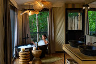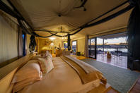Nestled amongst a canopy of trees overlooking a seasonal riverbed, Little Tubu offers an exceptional and intimate bush experience for a maximum of six guests. With three traditionally styled tents on raised wooden platforms, each has a private viewing deck, an outdoor shower and en-suite bathroom facilities. Elevated walkways link the tents to the main dining, bar and pool areas that are designed to blend seamlessly into the surrounding environment and maximise the spectacular views.