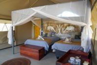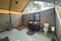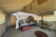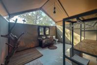 The camp features six tented en-suite rooms, thoughtfully positioned to blend into the natural surroundings while offering comfort and privacy. Each tent is designed to maximize the views and sounds of the bush. The interiors are simple, featuring solar-powered lighting and hot showers to enhance your wilderness experience. Whether you are relaxing in your tent during the day or enjoying an early morning coffee on your private deck, the bush is always within reach.