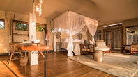 Accommodation consist of canvas tents (including family units), perch on low wooden decks and pine walkways link them to the raised main area. Each tent has an open ensuite bathroom and separate toilet.