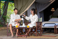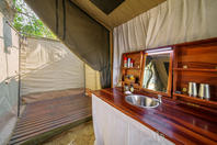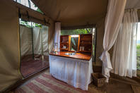 Accommodation consists of five twin or double en suite Meru tents. . Each tent has en-suite bathroom facilities with a flush loo and overhanging safari-style bucket shower. Inside the tent is a lit changing area complete with a running water basin.