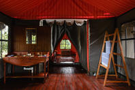 The main area serves as the social hub of the lodge, where guests can relax and soak in the tranquil atmosphere. The tented lounge, dining area, and bar are designed to complement the surrounding environment. Comfortable seating, an open deck, and a small library offer spots to unwind, while the swimming pool provides a refreshing escape from the midday heat.