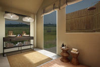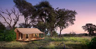 Nkasa Linyanti is a small luxury tented camp with six raised canvas tents designed to blend into the natural surroundings. The tents open to let in fresh air and stunning views, and each one comes with a private bathroom that includes both indoor and outdoor showers. Inside, the style is simple and elegant, using natural materials like wood, canvas, and woven decor to reflect the beauty of the area.