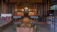 The main lodge has a dining area, bar and lounge with small library and features many interesting artefacts and photographs. Two covered seating areas at the edge of the escarpment provide guests with breathtaking views over the Boteti River. The river attracts many zebra and wildebeest herds during the dry season (June to Oct) offering excellent game viewing from the comfort of the camp. There is a small plunge pool, as well as a floating game viewing hide offering a close yet safe view across the river into the national park.