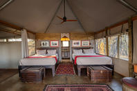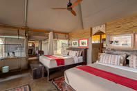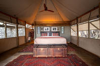 This authentic safari camp is styled in the tradition of an East African tented camp. Meno A Kwena offers ten safari tents. The tents are simple yet stylishly furnished with comfortable bedding, a fan as well as gauze sliding doors and windows. Each tent has an en suite bathroom with a shower and a flush toilet. Each tent features a private sitting area with views over the Boteti River.
