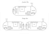 Two rooms connect by a small walk way and can be used by a family.