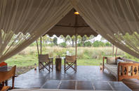 Duba Explorers Camp features five expedition-style tents under light cotton canvas on slightly raised decks. Each tent has a private veranda, small desk and en-suite facilities consisting of a flush loo, double basins and indoor shower. Fans and careful open-air design maintain a comfortable climate for rest and relaxation. The camp is set on the banks of a river, looking out across a floodplain with easy access to water-based activities and the main island for game drives.