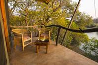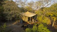 Accommodation comprises of four safari tents raised on 3m high platforms. All the tents overlook the lagoon but also have a view of the plains behind the camp offering unique opportunities to spot game. Each safari tent has an en-suite bathroom and veranda presenting a unique view from the tree canopy.
