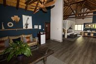 The six luxury chalets are open-plan suites each with a lounge, double bedroom, en suite bathroom (inside /outside shower) and a private viewing deck that offers spectacular views over the riverbed. Decorated in natural earthy tones, they exude warmth and blend with the natural environment. All luxury chalets feature air-conditioning, overhead fans, fireplaces, mini bars, tea/coffee facilities, mosquito nets and electronic safes.