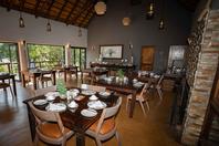 The rustic lounge area is shared by all guests and is an ideal place to relax and share experiences. Breakfast and lunch are enjoyed in the dining room or on the deck. Dinner is served around a log fire in the boma, while enjoying the mystical nocturnal sounds under the African sky. Additional facilities include two swimming pools, a spa, gym, conference centre, small library and games room.