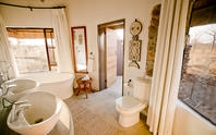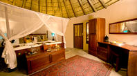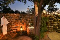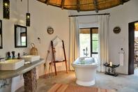 Guests are accommodated in eleven thatched comfortable suites - one of which is both wheelchair friendly and family oriented. Each suite is uniquely styled and themed to reflect Africa's rich and diverse cultures, with extra-length King size beds appointed with crisp, white linen. The en-suite bathrooms, with natural stone baths, open out to private outdoor showers with panoramic views, allowing guests to experience the true spirit of Africa