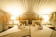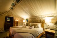 Accommodation consists of six meru canvas tents, complete with heated bucket showers, basins and flush toilets.