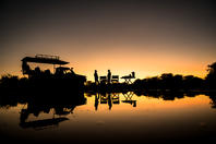 The main dining tent overlook a waterhole and the boma area/ fire pit, is where guests get together after dinner or sunset drinks.